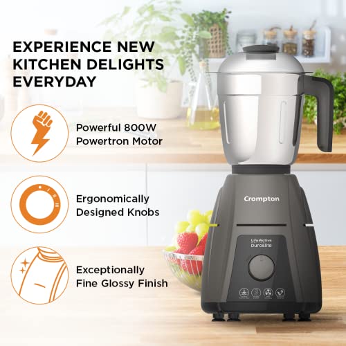 Crompton DuroElite 800Watt Mixer Grinder with Motor Vent-X Technology (3 Stainless Steel Jars, Mettalic Finish)